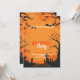 The word "Halloween" is boldly displayed in a dripping orange font, standing out against the eerie backdrop and capturing the playful spirit of the holiday. The rest of the text, in a mix of orange and white, ensures all your party details are clear and easy to read. The back of the invitation features the same haunting scene, creating a seamless and cohesive design from front to back. Perfect for setting the tone for a night filled with Halloween thrills and fun!