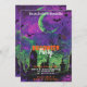 Invite your guests to a spooky and vibrant celebration with this fun and modern Halloween party invitation! The full-picture design is bold and eye-catching, featuring a purple and green cemetery that sets the perfect eerie tone. The graves and crosses, in shades of purple and black, add a mysterious yet playful atmosphere, while the crescent moon glows against a green and black sky filled with twinkling stars.