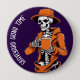 "Graveyard Grind Time" skeleton Halloween button - dark humour metal pin