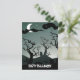 Clouds and the crescent moon over a cemetery and spooky trees.