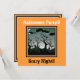 Graveyard Halloween Party Invitation orange. Cool invitation featuring a graveyard. Spooky trees, graves, crosses, the crescent moon and clouds above them on grey background compose this image of a graveyard.