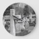 These old stone headstones and this cross mark graves in Laurel Hill Cemetery. Historic cemeteries can have goth, eerie, or spooky qualities to them. This black and white photo casts a stark, bleak, creepy light on the necropolis. Some find cemeteries scary, frightening, or macabre. Others find cemeteries peaceful and beautiful.