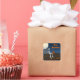 Halloween sticker with mummy sitting on coffin in the graveyard at night with a full moon. Perfect for treat bags or envelope seals for cards or invitations. Coordinating invitation available in store.