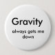 Gravity, always gets me down 10 cm round badge