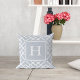 Gray and White Geometric Bamboo Lattice Monogram Cushion