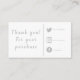 A crisp gray and white insert card with playful script says "Thank you for your purchase", offering a clean, modern appreciation touch for Etsy parcels and small business packaging. A vertical divider separates the message from subtle silver tone social icons with space for handles, making it easy for customers to follow, tag, and review. Icons can be swapped on request to match preferred platforms. The reverse provides room for shop details, website, email, phone, or a short care note, following best practice layouts that keep information legible and on brand.