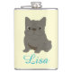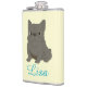 The flask itself is fine. It’s a cheap flask, obviously bought in bulk, however am prepared to overlook that. Given that it is a personalized item, I would have liked to have seen gift boxing instead of the generic packaging. Terrible printing, and/or quality. It’s a cheap, tacky vinyl. It is not cut straight and is also applied in a way that it is overhanging the bottom, causing the glue to catch on items and it will eventually roll and tear, damaging the wrap.