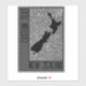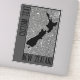 New Zealand country image in black against a black sand beach. The colours of the design are natural - brown, grey, soft white and black. Surrounding the NZ picture is a frame with text. Both of these text are custom so can be altered or even removed completely if required.
