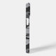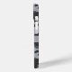 Customize this gray camouflage iPhone 15 case with your name in a trendy modern CAP font in dark gray on light gray. It's masculine and perfect for your favorite military, hunting, country or outdoorsman!
