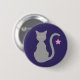 A silhouette cartoon of a gray cat with pink eyes on a purple background. A pink star dangles from the cat's tail.