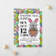 This invitation is perfect for anybody planning a fun Easter egg hunt this Easter holiday. Featuring a gray Easter bunny and decorated with vibrant Easter eggs around the border and on the back of the invite, this invitation will be sure to impress your guests.