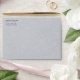 The elegant, simple, and minimalistic immigration attorney business mailer envelope design features customizable black typography on a gray linen texture background.