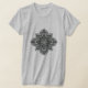 An unusual geometric mandala in shades of gray and charcoal add an understated flair to your t-shirt.