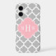 Gray White Moroccan #5 Pink 3 Initial Monogram