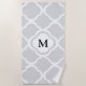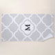 Gray White Quatrefoil Pattern Monogrammed Beach Towel