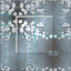 Elegant grayish blue geometric cherry blossom pattern.
