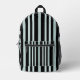 Backpack print cut sew style storage bag printed with Grayish Grey Green Line Stripes On Black pattern artwork design by TheFabricSeal at Zazzle #ZazzleMade https://www.zazzle.com/store/thefabricseal