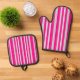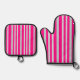 Grayish Grey Green Line Stripes On Pretty In Pink Oven Mitt & Pot Holder Set