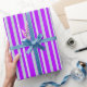 Gift Giving Wrapping Paper Roll printed with Grayish Grey Green Line Stripes On Pretty Purple pattern artwork design by TheFabricSeal at Zazzle #ZazzleMade https://www.zazzle.com/store/thefabricseal