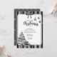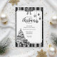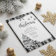 Embrace contemporary elegance with this sophisticated invitation featuring a stylish Christmas tree with wrapped presents against a chic striped gray and black background with falling snowflakes. The modern monochrome aesthetic and playful ornament border create perfect ambiance for trendy holiday celebrations, minimalist parties, or stylish contemporary Christmas gatherings.