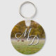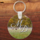 Customisable keychain with your initial featuring an Elk couple graze a field on a chilly autumn fall season morning with some lingering fog. The large bull elk eats some grass while the female cow elk looks on. This is in Boxley Valley, Arkansas, USA.