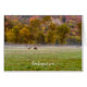 Thinking of you greeting card featuring an Elk couple graze a field on a chilly autumn fall season morning with some lingering fog. The large bull elk eats some grass while the female cow elk looks on. This is in Boxley Valley, Arkansas, USA.