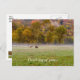 Thinking Of You Postcard featuring an Elk couple graze a field on a chilly autumn fall season morning with some lingering fog. The large bull elk eats some grass while the female cow elk looks on. This is in Boxley Valley, Arkansas, USA.