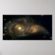 In the direction of the constellation Canis Major, two spiral galaxies pass by each other like majestic ships in the night. The near-collision has been caught in images taken by NASA's Hubble Space Telescope and its Wide Field Planetary Camera 2. The larger and more massive galaxy is catalogued as NGC 2207 (on the left in the Hubble Heritage image), and the smaller one on the right is IC 2163. Strong tidal forces from NGC 2207 have distorted the shape of IC 2163, flinging out stars and gas into long streamers stretching out a hundred thousand light-years towards the right-hand edge of the image. Computer simulations, carried out by a team led by Bruce and Debra Elmegreen, demonstrate the leisurely timescale over which galactic collisions occur. In addition to the Hubble images, measurements made with the National Science Foundation's Very Large Array Radio Telescope in New Mexico reveal the motions of the galaxies and aid the reconstruction of the collision. The calculations indicate that IC 2163 is swinging past NGC 2207 in a counterclockwise direction, having made its closest approach 40 million years ago. However, IC 2163 does not have sufficient energy to escape from the gravitational pull of NGC 2207, and is destined to be pulled back and swing past the larger galaxy again in the future. The high resolution of the Hubble telescope image reveals dust lanes in the spiral arms of NGC 2207, clearly silhouetted against IC 2163, which is in the background. Hubble also reveals a series of parallel dust filaments extending like fine brush strokes along the tidally stretched material on the right-hand side. The large concentrations of gas and dust in both galaxies may well erupt into regions of active star formation in the near future. Trapped in their mutual orbit around each other, these two galaxies will continue to distort and disrupt each other. Eventually, billions of years from now, they will merge into a single, more massive galaxy. It is believed that many present-day galaxies, including the Milky Way, were assembled from a similar process of coalescence of smaller galaxies occurring over billions of years. This image was created from 3 separate pointings of Hubble. The Wide Field Planetary Camera 2 data sets were obtained by Debra Meloy Elmegreen (Vassar College), Bruce G. Elmegreen (IBM Research Division), Michele Kaufman (Ohio State U.), Elias Brinks (Universidad de Guanajuato, Mexico), Curt Struck (Iowa State University), Magnus Thomasson (Onsala Space Obs., Sweden), Maria Sundin (Goteborg University, Sweden), and Mario Klaric (Columbia, South Carolina).
