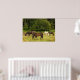 This poster features brown and white horses grazing in the high grass of a golden field on a warm summer day.