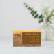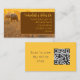 Fibre company business cards. Sheep grazing in a meadow image is the background for off-set panel with text. Colours are golden sunshine and brown with text on both sides. Also add your shop's QR code to the back. Perfect for a yarn company, craft shop, wool broker, or knitting instructor.