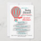 Greatest adventure baby shower invitation in soft gender neutral colours of red, teal and grey. Air transportation theme with hot air balloon in the clouds and banners and bunting flowing in the breeze. Sweet Greatest adventure theme for mummy to be and daddy to be, gender neutral baby shower invitation set.