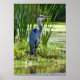 Standing close to four feet high, the Great Blue Heron (Ardea herodias) is one of the most majestic of birds. He makes a colourful nature lover’s image as he watches for a fish to swim by in the marshy pond. He has colourful blue, grey, and light brown feathers, yellow eyes and a long yellow beak. Customise by adding your own caption, name, or monogram to the image.