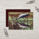 This artist trading card features the Great Blue Heron, a large wading bird in the heron family Ardeidae, common near the shores of open water and in wetlands. He is the largest North American heron. Noteable features include flight feathers, red-brown thighs, and a paired red-brown and black stripe up the flanks; the neck is rusty-grey, with black and white streaking down the front; the head is paler, with a nearly white face, and a pair of black plumes running from just above the eye to the back of the head. The feathers on the lower neck are long and plume-like. Because this is the breeding season, he also has plumes on the lower back and an orange bill. He is standing in a shallow creek dipping his beak into the water hoping to snag a fish or frog. The bright sunny day light creates a wonderful mirror image reflection.