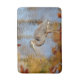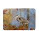 Great Blue Heron framed with fall foliage Bath Mat