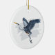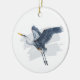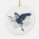 The ornament's design features a great blue heron in flight. The illustration is by artist Dawn Witherington.