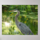 Great Blue Heron fishing in a pond in Cedar Hill Cemetery
