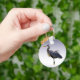This keychain features the Great Blue Heron, a large wading bird in the heron family Ardeidae, common near the shores of open water and in wetlands. He is the largest North American heron. Noteable features include slaty flight feathers, red-brown thighs, and a paired red-brown and black stripe up the flanks; the neck is rusty-grey, with black and white streaking down the front; the head is paler, with a nearly white face, and a pair of black plumes running from just above the eye to the back of the head. The feathers on the lower neck are long and plume-like. Because this is the breeding season, he also has plumes on the lower back and an orange bill. He is standing in shallow water and his feathers are backlit by the luminous sunlight.