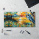 Great Blue Heron Sunset Wildflowers Landscape Desk Mat