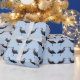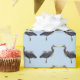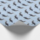 This wrapping paper features a repeating pattern of the Great Blue Heron. This magnificent fellow is a large wading bird in the heron family Ardeidae, common near the shores of open water and in wetlands. He is the largest North American heron. Noteable features include slaty flight feathers, red-brown thighs, and a paired red-brown and black stripe up the flanks; the neck is rusty-grey, with black and white streaking down the front; the head is paler, with a nearly white face, and a pair of black plumes running from just above the eye to the back of the head. The feathers on the lower neck are long and plume-like. Because this is the breeding season, he also has plumes on the lower back and an orange bill. His feathers are backlit by the luminous sunlight.
