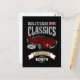 Presenting our exquisite "British Classic Beauty" Postcard, a captivating homage to England's illustrious automotive legacy. Against a backdrop of deep black, the design begins with bold metallic grey text, proudly showcasing "British" alongside the iconic Union Jack in vibrant blue, white, and red, embodying the spirit of British pride and heritage. Below, the word "Classic" emerges in the same distinguished font, evoking a sense of nostalgia for the timeless elegance of vintage British cars. Nestled beneath, an exquisite illustration of a red AC Shelby Cobra captures the essence of automotive excellence, accompanied by a badge in white with a black ring, bearing the revered manufacturing year of 1962 in bold black text. A delicate white banner with a subtle red outline frames the scene, adorned with the bold golden text "Legendary" in a graceful arch, paying homage to the enduring legacy of British engineering prowess. Completing the ensemble, the word "Beauty" in vintage font, adorned with charming floral elements in white, adds a touch of timeless allure. Embrace the spirit of British craftsmanship and motorsport history with this exceptional postcard, a true collector's item for enthusiasts of classic cars and British culture alike.