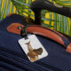I was happy with the acrylic tag but it came with a thin leather strap to attach the tag to luggage (like a cat collar). I replaced the strap with a metal ring off of a key ring as the leather strap would come undone or break easily as luggage is sometimes handled without much care by airlines. Printing is great. Colours and positioning of the design I put on the tag were perfect. Very pleased.
