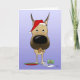 Great Dane trying to get away with eating all of Santa's cookies. Great Dane is wearing a Santa Hat, with ginger bread man in his mouth with caption that reads, "Ho... Ho... Ho???"