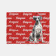 Your dog deserves a blanket of their own, especially with their name and breed on it. Fun throw to warm the season by the fireside or tossed over the sofa. A Great Dane dog in Santa's hat, with the dog's name patterned on a red background. TIP: Choose Personalise to change the background colour to one which matches your decor if you like.