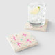 The coasters are gorgeous, a quality feel and heavy weight. They look like a precious archeological find. A rustic stone juxtaposed with a modern floral black and white print. I like the way the print goes slightly imperfect on the cut stone edges giving them a kind-of natural beauty.