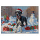 A majestic Great Dane runs through the snowy winter scene, wearing a festive red Christmas hat. This striking design captures the breed’s powerful stature, gentle nature, and loyal personality while celebrating the warmth and magic of the holiday season. A heartwarming moment full of festive cheer.