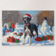 Great Dane Running in Snow with Christmas Hat Jigsaw Puzzle