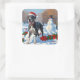 Great Dane Running in Snow with Christmas Hat Square Sticker