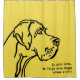 Personalised shower curtain featuring a striking Great Dane portrait drawing in bold yellow and black. Add your own custom text to make this curtain truly unique—perfect for dog lovers and anyone who wants a playful, elegant accent in their bathroom. Message on the front: “There are places where even a Great Dane won’t follow.” A quirky, stylish gift and a real conversation starter for any home.