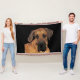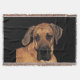 Great Danes are domestic dogs also known as the Gentle Giant or German Mastiff. The wonderful pet on this throw blanket is a gentle baby with faun coloured yellow, gold and brown fur, black nose, floppy ears and sweet, soulful eyes. He is one of the world's tallest dog breeds.