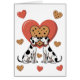 Couple of Great Danes with hearts on the front side. Same Great Dane couple on the back side with a personal message.